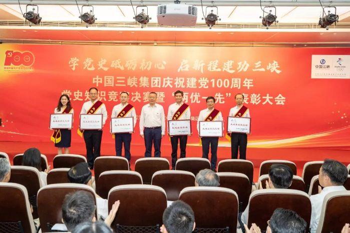 ▲三峽集團舉辦慶祝建黨100周年黨史知識競賽決賽暨“兩優一先”表彰大會