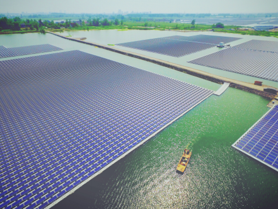 圖為三峽集團在安徽淮南投資建設的漂浮式水面光伏項目。? 三峽集團供圖 張怡然/攝